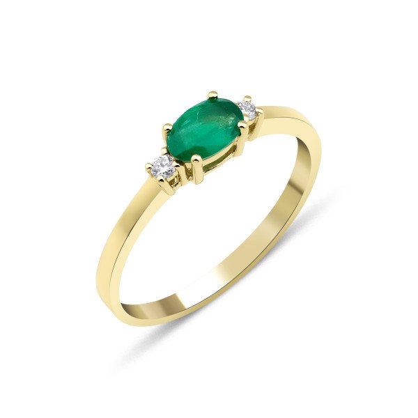 14Kt. Guldring Med Brillanter 0,05ct. W/si og Smaragd TR01304YSM