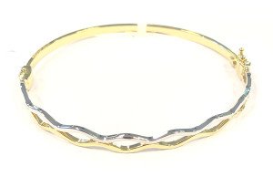 14Kt. Armring i rødguld og hvidguld og oval og bølget med lås