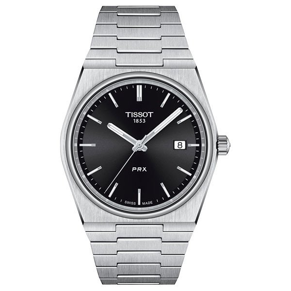 Tissot PRX herre ur i retro stil med sort skive, safirglas og vandtæt til 10 bar.
