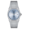 Tissot PRX unisex ur i retro stil med lyseblå skive, safirglas og vandtæt til 10 bar.